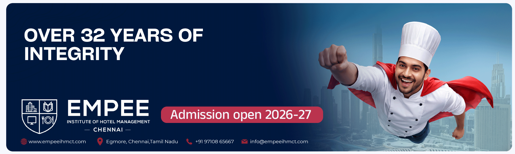 Learn from the best. At Empee, your journey starts with industry leaders who bring real-world hospitality experience into every classroom. Empee Institute of Hotel Management, from the heart of Chennai for over 32 years, under Empee International Hotels & Resorts, builds global careers with Hilton Worldwide 8,000 hotels.